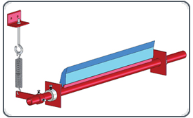 | Scrapers are of two types viz. external blade Scraper with counterweight for external purpose and V-blade type internal Scraper for cleaning the Belt from inside on return. Self Cleaning / Belt cleaning return idlers are also available. |